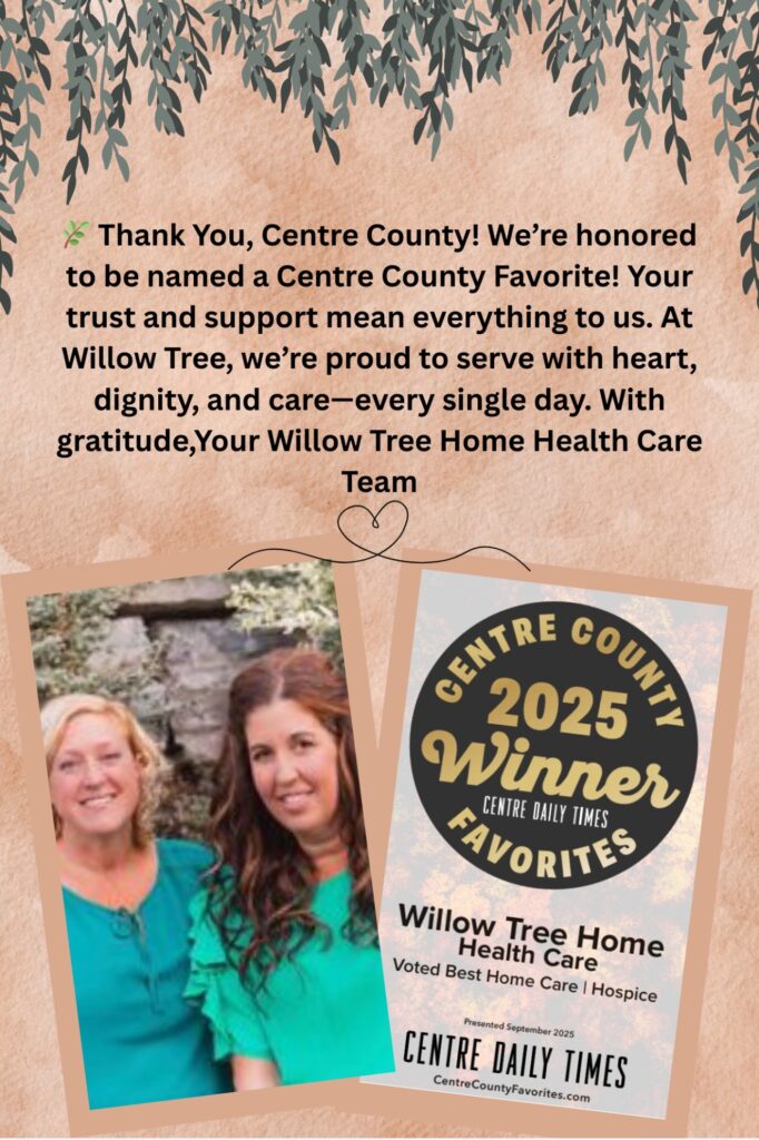 Willow Tree Home Health Care is a nurse-owned Home Health Agency providing Skilled Home Health Care & Non-Medical Home Care to our community. Our team of compassionate and caring staff are devoted to the community and strive to deliver the finest care to all patients & improve patient outcomes and safety. We are licensed by the Pennsylvania Department of Health to serve Centre County as well as 12 other surrounding counties.